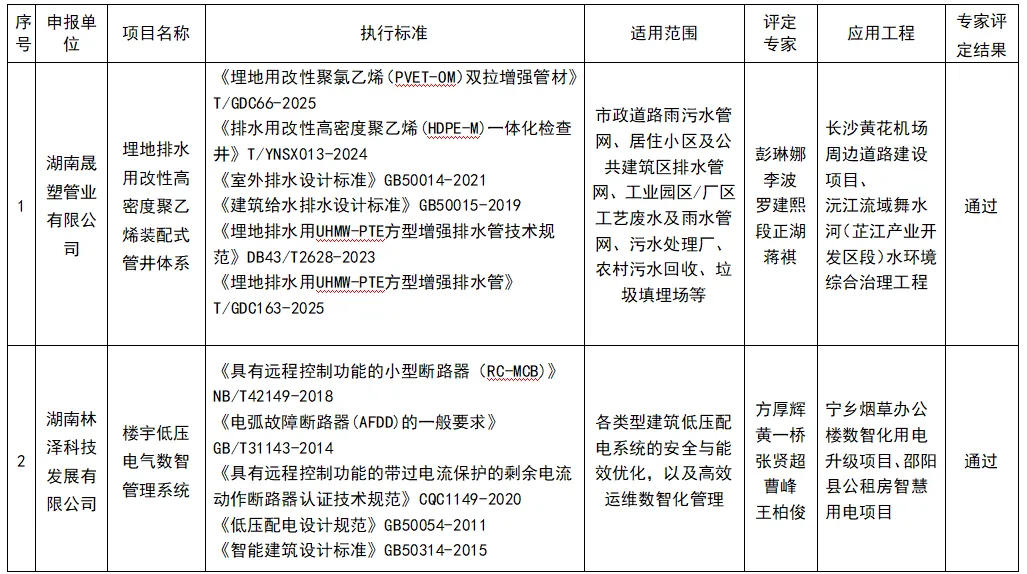 为促进建设领域科技成果推广转化,推动产业技术升级、提高建设工程质量,我局组织专家对埋地排水用改性高密度聚乙烯装配式管井体系、楼宇低压电气数智管理系统、聚苯胺防腐涂料项目进行了评定。按照程序,现将评定结果予以公示,公示时间为2026年1月15日至2026年1月21日,单位或个人对评定结果存在异议的,请在公示期内以书面形式反馈至长沙市住房和城乡建设局。