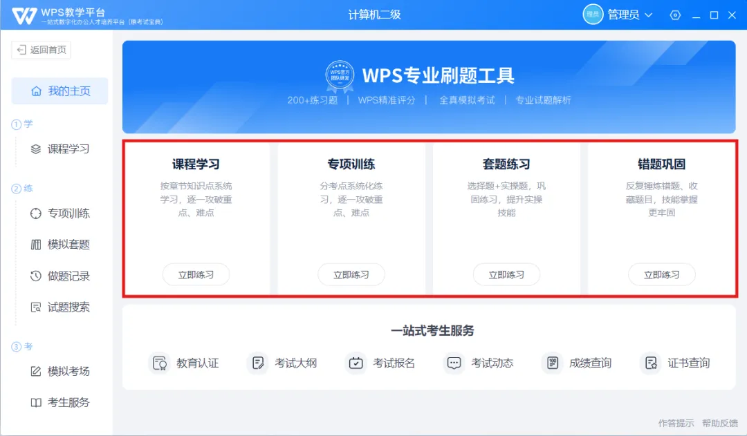 你的“考试装备补给包”已送达!没错,就是大家心心念念的计算机一/二级题库,现在可以领取使用啦!题库内包含WPS通关精品课、1000+道专项训练、14套模拟套题,希望能帮助大家更高效地学习备考,祝各位备考顺利!