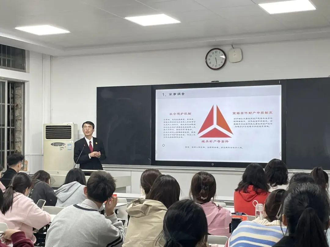 2024年1月,本文作者受邀为湖南师范大学法学院学生讲授家事审判实务课程。(摄影:朱家惠)