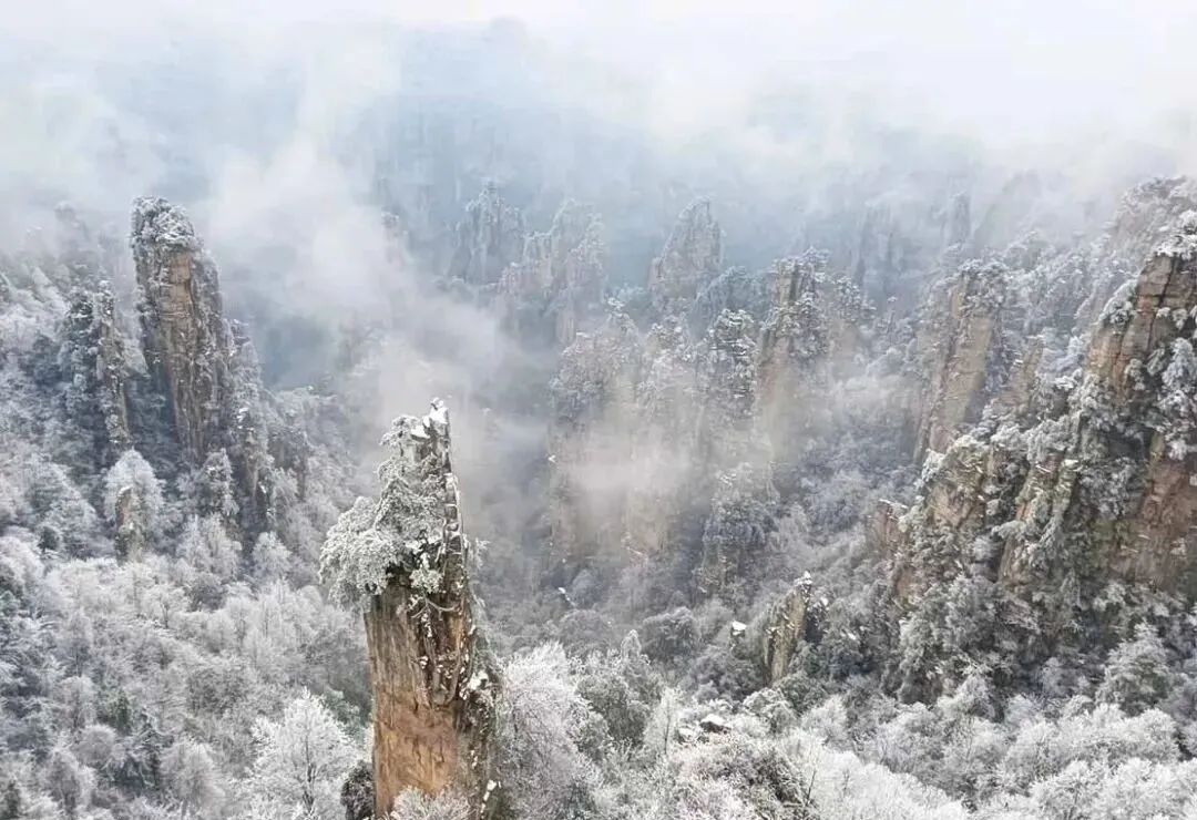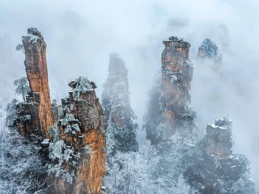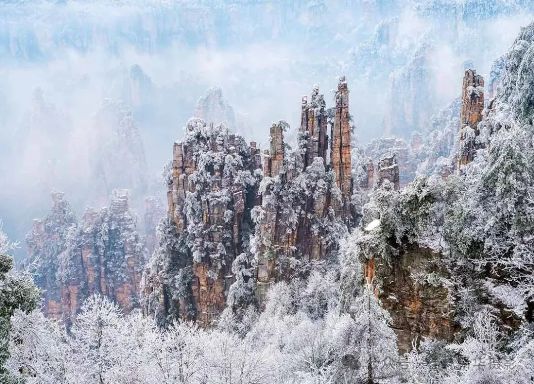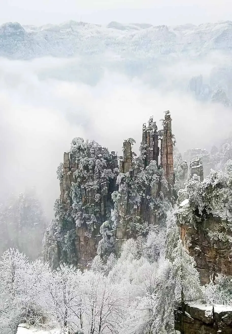 张家界自然风光以峰称奇、以谷显幽、以林见秀。其间有奇峰3000多座,气势壮观,有“奇峰三千,秀水八百”之美称。主要景点有天子山、黄石寨、金鞭溪、袁家界、杨家界等。“张家界四季皆胜景,唯有腊月冬雪景更佳。”张家界雪景风光对于摄影创作来说可谓是一绝, 雪后放晴的张家界,日出、晚霞、云海、雾凇、雪景、奇松、怪石齐现,如诗如画,如梦如幻,美得令人陶醉,让人流连忘返,别有一番胜景,是张家界风光摄影创作之最佳时机。