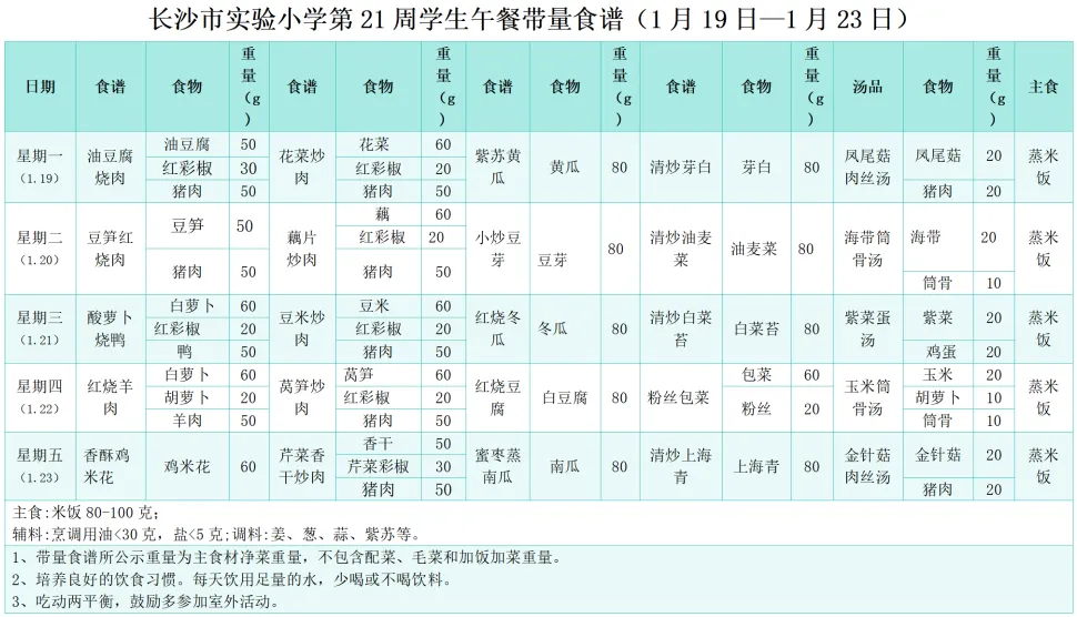 第21周学生带量食谱