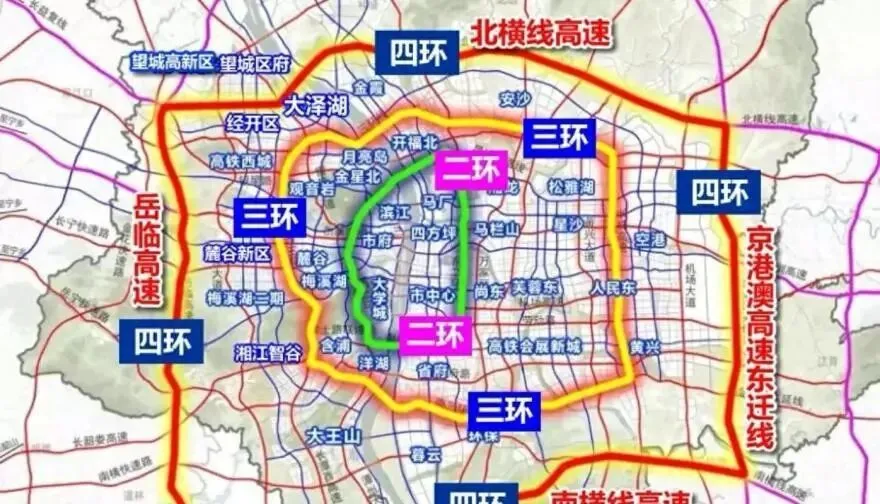 长沙五环并非从零新建,而是整合既有高速与新建路段的闭合高速外环,与城市环线体系形成清晰层级:
