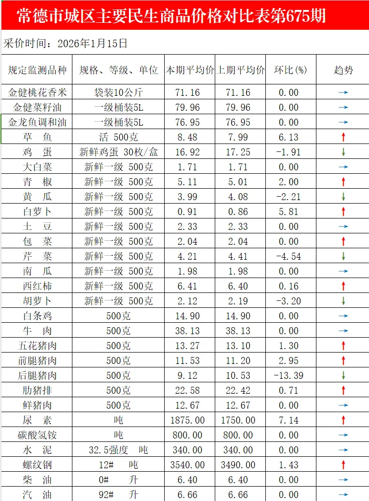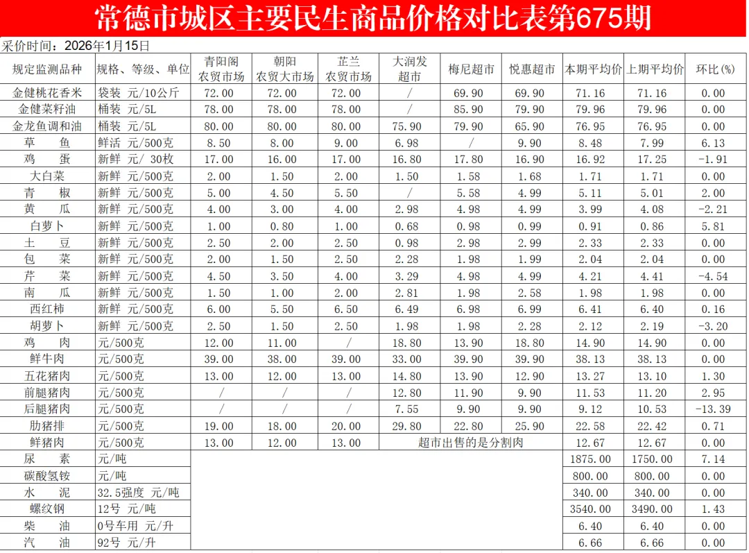 为方便群众了解民生商品市场价格动态,我委通过“常德发改”发布近期市城区主要民生商品价格情况。