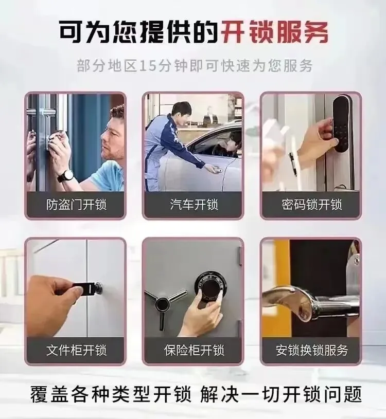 上门应急开锁:包括各种防盗门锁、民用锁、商业专用锁、智能锁、密码锁、保险柜锁、汽车门锁、其它异形锁等。