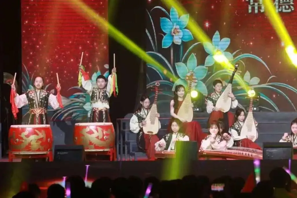 初中民乐团一曲《象王行》,古韵悠长,丝竹声声传递中华文化之美;常德丝弦《0736常德YOUNG》创新融合非遗唱腔与潮流说唱,彰显地域文化的时代生命力;街舞、音乐剧等节目则生动展示了芷兰学子朝气蓬勃、全面发展的精神风貌。芷兰交响乐团与师生合唱团携手演绎《青年圆舞曲》《向往》等经典,激昂旋律激起全场共鸣。晚会期间,学校还对2025年在国家、省、市级竞赛中获奖的部分学生进行了集中表彰,体现了学校“五育并举”育人理念的扎实成果。
