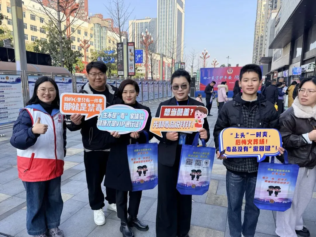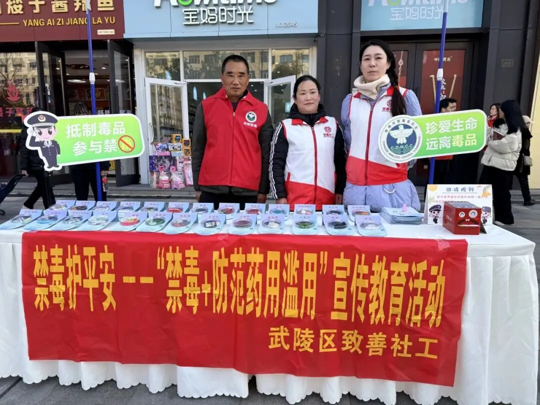 2026年1月10日,第六个中国人民警察节如期而至,意义非凡。由常德市公安局主办、武陵分局承办的“四十载守护平安 110勇毅前行”主题宣传活动,在欢乐城前坪隆重举行。武陵区致善社会工作服务中心紧抓这一重要契机,携手武陵区社会禁毒协会、芷兰街道同步开展了一场别开生面的“禁毒+防范药物滥用”宣传教育活动,以实际行动向守护一方平安的人民警察致敬,为市民群众送上满满的“无毒”安全礼包。