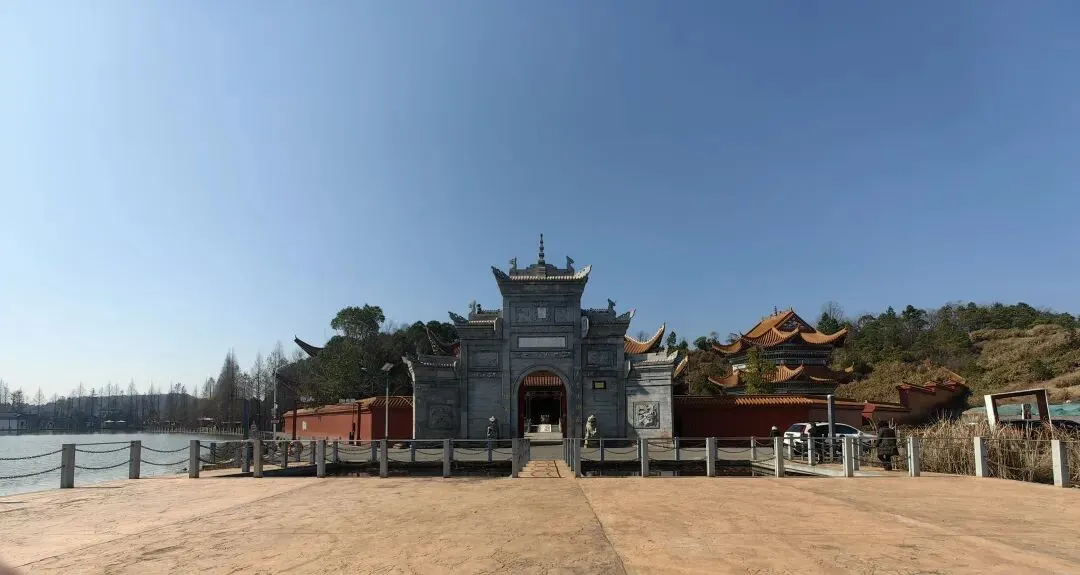 车停在村委会前的印山大道,一下来就看见天玺湖——名字里带着几分天赐的贵气。湖水被日光揉成一片细碎的银,轻轻晃着,人的心也跟着漾开。抬眼便见湖心小山上立着一处仿古的檐角,静默地等在阳光下,仿佛早就知道我们会来。