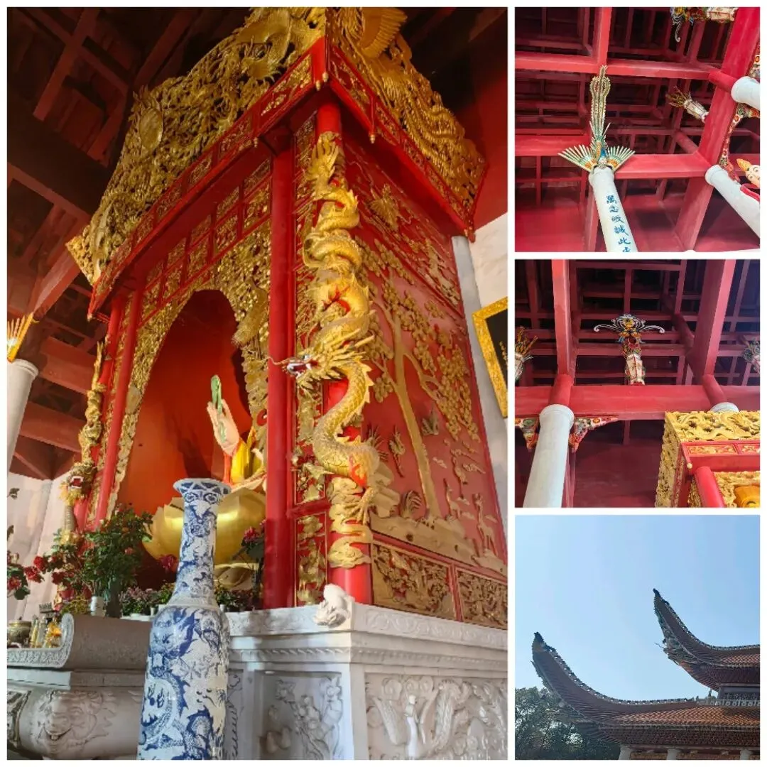 如今的天玺宫,已是占地三十余亩的清净道场。主殿据说是全省最大的单体宝殿,其装饰也是蛮特别的。内里柱顶饰凤,梁间支着宝瓶,慈航真人神龛前金龙盘柱,大殿檐下彩龙昂首。而抬头望,横梁上并无繁复彩画,整体简洁、富丽而庄重,自成一派从容气度。殿内格局更是独特:南岳圣帝端坐主位,吏部、刑部等六部尚书分立两侧,俨然把一座古代朝廷搬进来了。