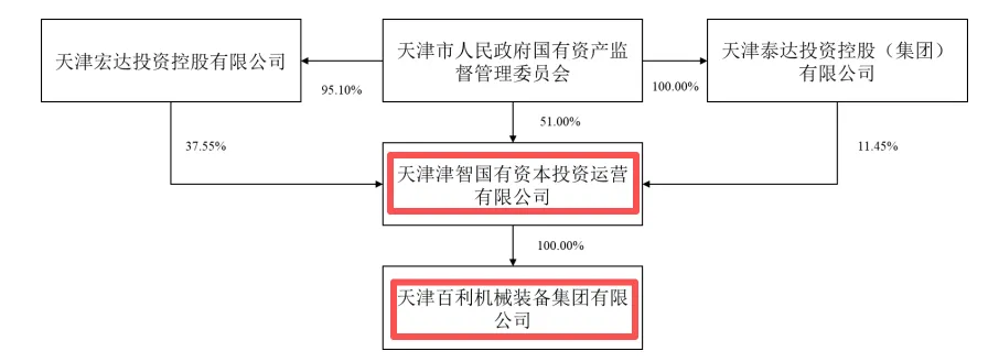注:天津津智国有资本投资运营有限公司(简称“津智资本”)持有百利装备集团100%股权,为百利装备集团的控股股东,天津市国资委持有津智资本100%股权,为百利装备集团的实际控制人。