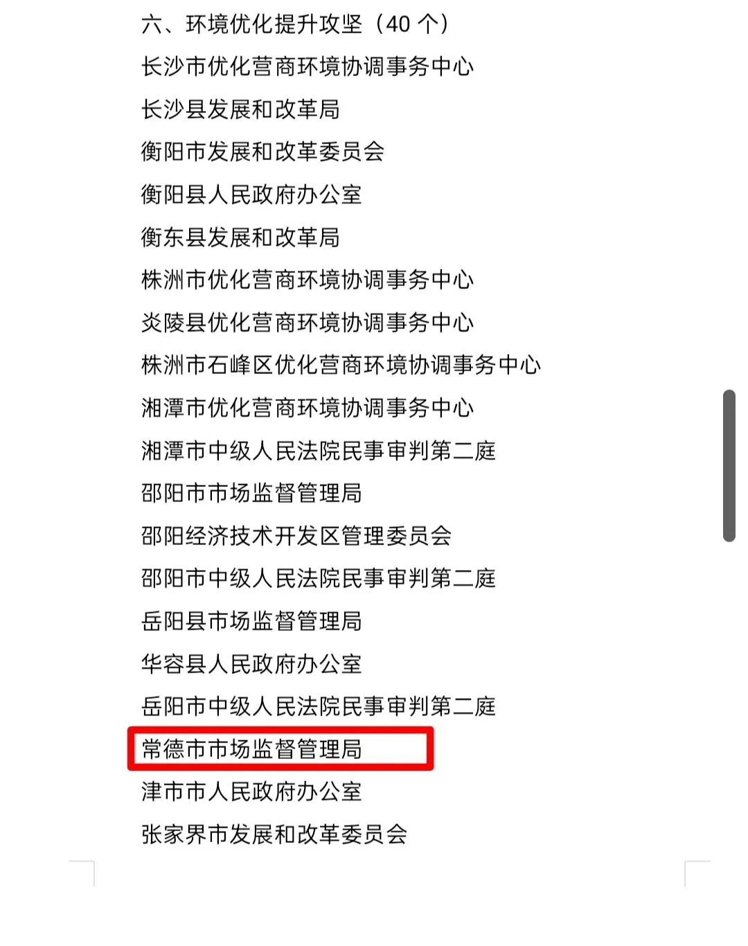 >环境优化提升 常德市市场监督管理局获省政府通报表扬