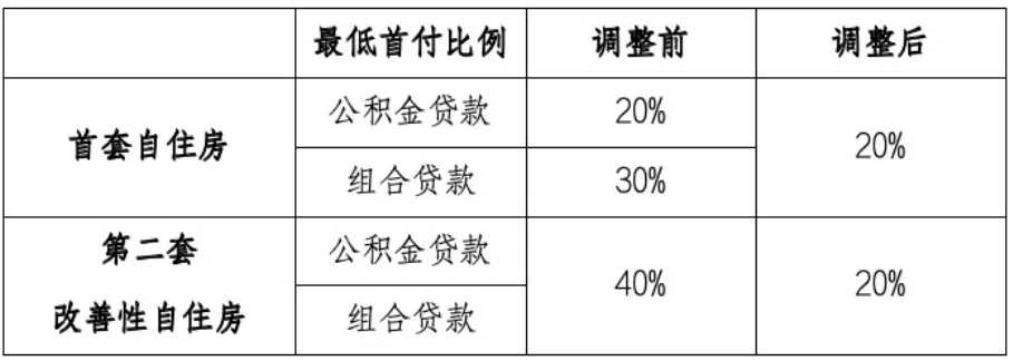 职工家庭购买首套或者第二套改善性自住房申请公积金贷款的,最低首付款比例统一调整为20%。