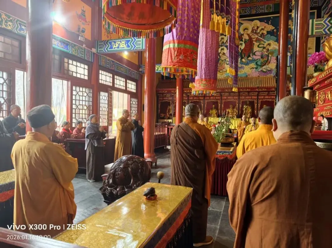 2026年1月16日,天清气朗,惠风拂楚湘。湖南省佛教协会副会长、长沙市佛教协会会长悟圣大和尚,省佛协副会长、市佛协常务副会长能净大和尚,市佛协副会长兼秘书长文振大和尚一行,代表长沙市佛协赴宁乡慰问市佛协及白云寺常住。