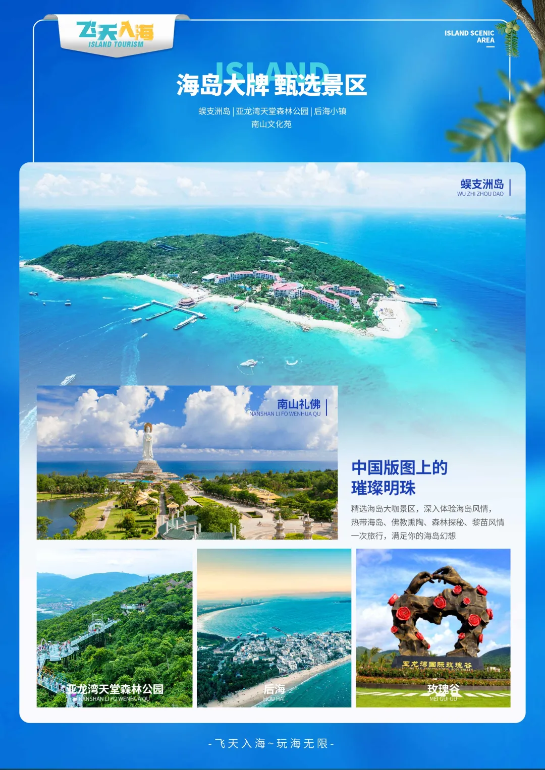 前往【蜈支洲岛】国家5A级景区,①玩:上天入海,任我翱翔;岛上四周海域清澈透明,海水能见度6—27米,南部水域海底有着保护很好的珊瑚礁,是世界上为数不多的没有礁石或者鹅卵石混杂的海岛,海底珊瑚五彩斑斓,美丽的热带鱼四处游荡,这里是公认的中国潜海胜地;②景:前往冯小刚贺岁喜剧《私人订制》外景拍摄地,重温电影画面;③情:情人桥,一吻定情,终成眷属;④拍:这里沙滩、阳光、碧水,绿树构成一幅美丽的滨海风光(游览不少于180分钟)