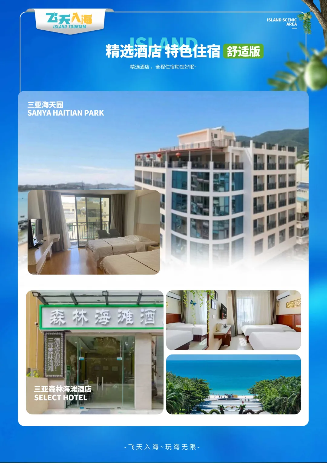 当天行程结束,自由活动感受让您意犹未尽的魅力三亚。早餐后,根据约定时间安排送机,结束本次愉快的“国际旅游岛”之行。(温馨提示:酒店最晚退房时间为12:00)2、住宿:全程经济舒适酒店,不提供自然单间,产生自然单房的需补房差;全程如需大床房提前告知。3、餐饮:全程含3正4早餐,早餐围桌或简式自助,正餐标30元/人/餐4、用车:地接指定GPS安全监控系统,VIP空调旅游巴士,1人1正座(海南正规26座以下旅游车无行李箱);8人以下不成团,安排司兼导或者更改升级产品。5、景点:报价包含景点首道门票(不含景区内设交通或自费项目,另有约定除外);6、导游:优秀持证专业导游,幽默风趣耐心解说、贴心细致管家式服务;关于购物:部分景区或酒店内设有购物场所,属于自行商业行为,购物随客意;关于自费:夜游三亚湾200元/人、千古情表演300元/人、红色娘子军演义260元/人,根据实际情况为准,自愿选择。为了更好的旅行体验,建议选择1个自费项目的消费预算。-END-