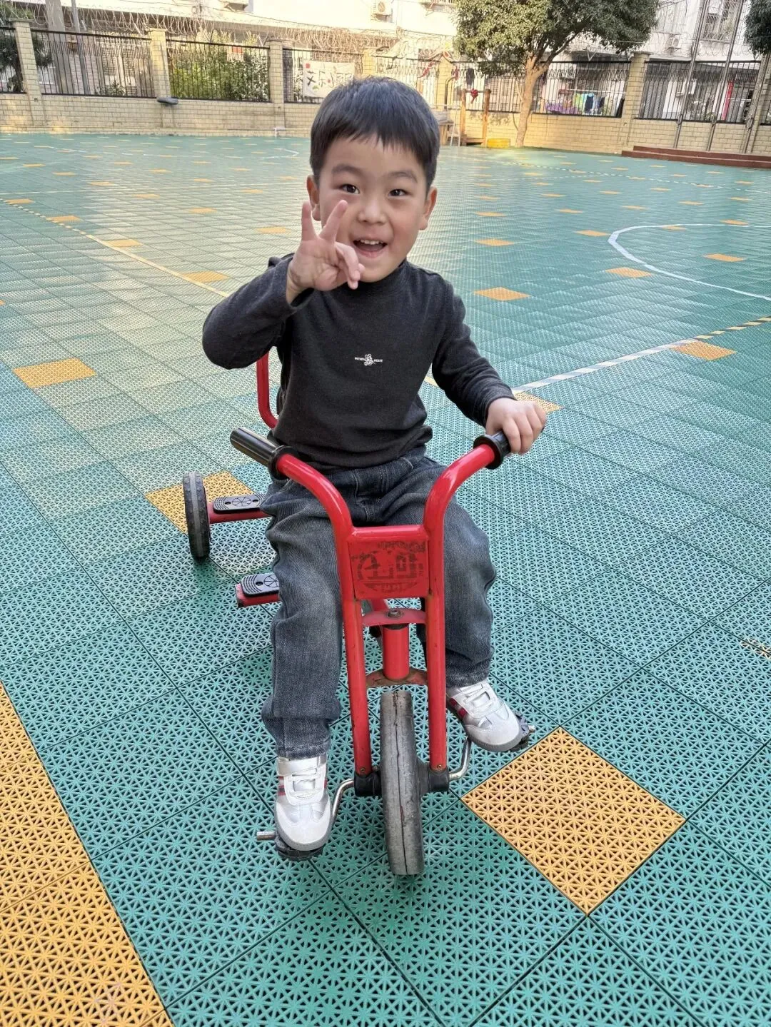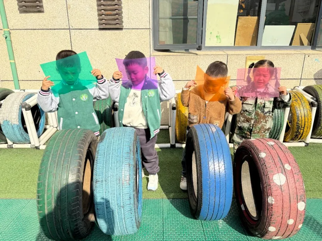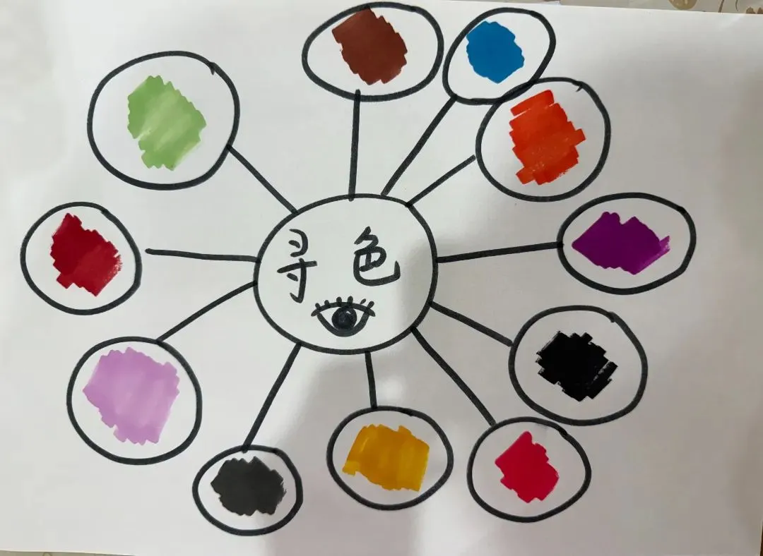 通过混色实验,孩子们发现红、黄、蓝三色能通过两两混合产生另一种颜色。小满提出了疑问:“老师,如果把红色、黄色、蓝色都混在一起呢?会不会变成彩虹色呀?”