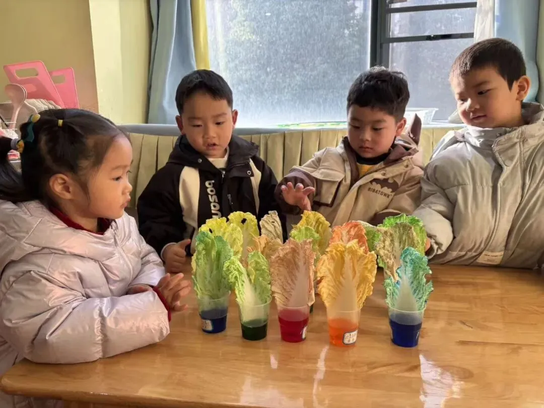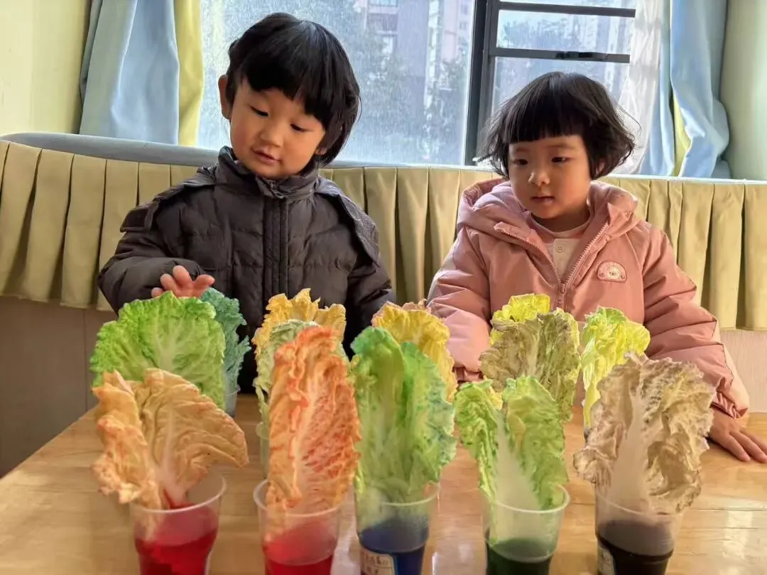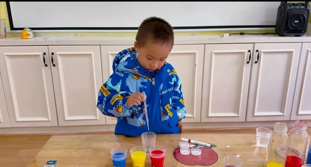 实际操作是孩子们获得直接经验最有效的方法,于是老师提供了滴管和颜料,带着孩子们进行“混色实验”。