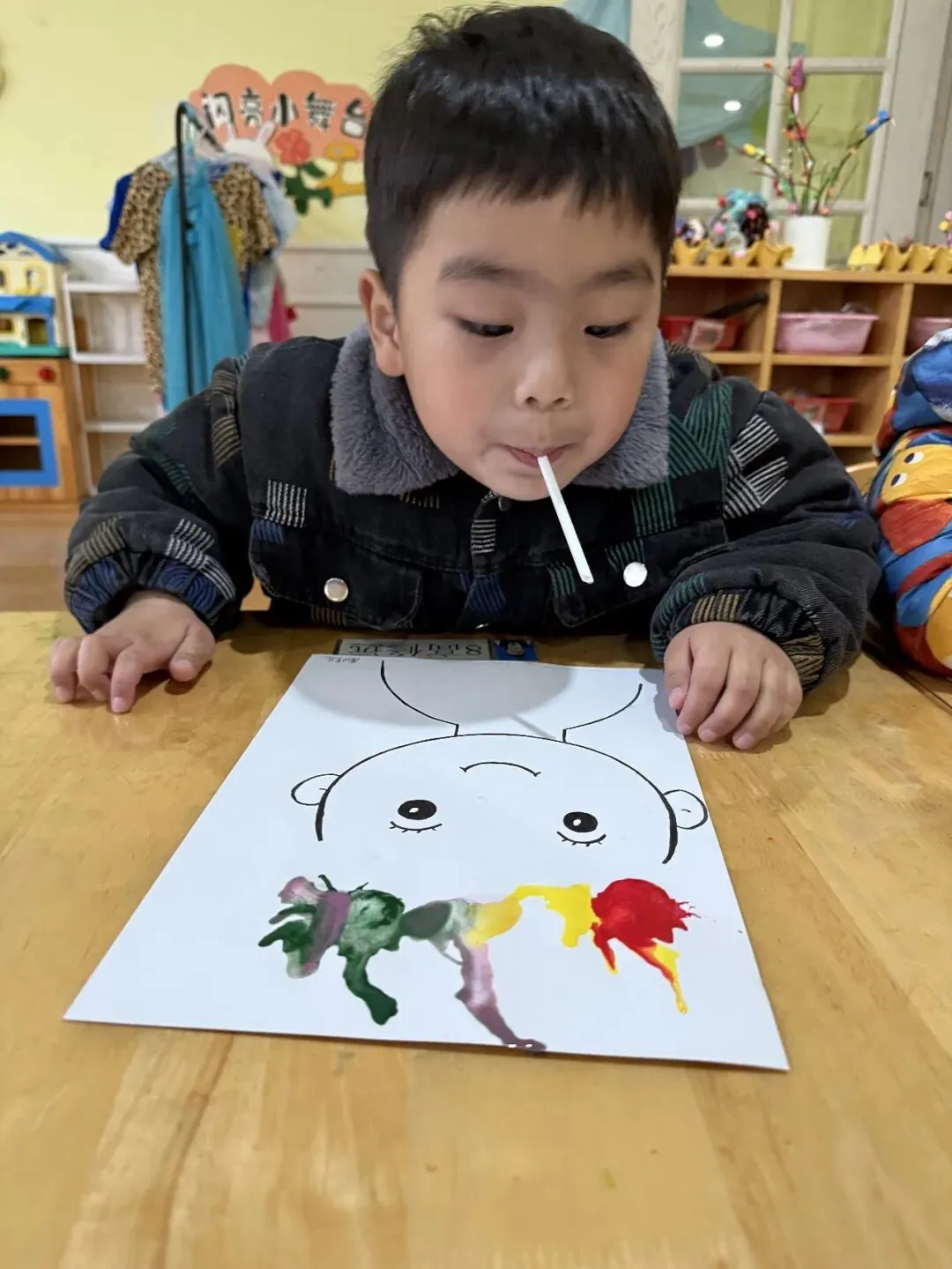 看,色彩在跳舞!宝贝们滴一滴颜料在纸上,鼓起小腮帮,用力一吹。色彩就像被施了魔法,四处"蹦蹦跳跳",开出奇妙的枝丫。