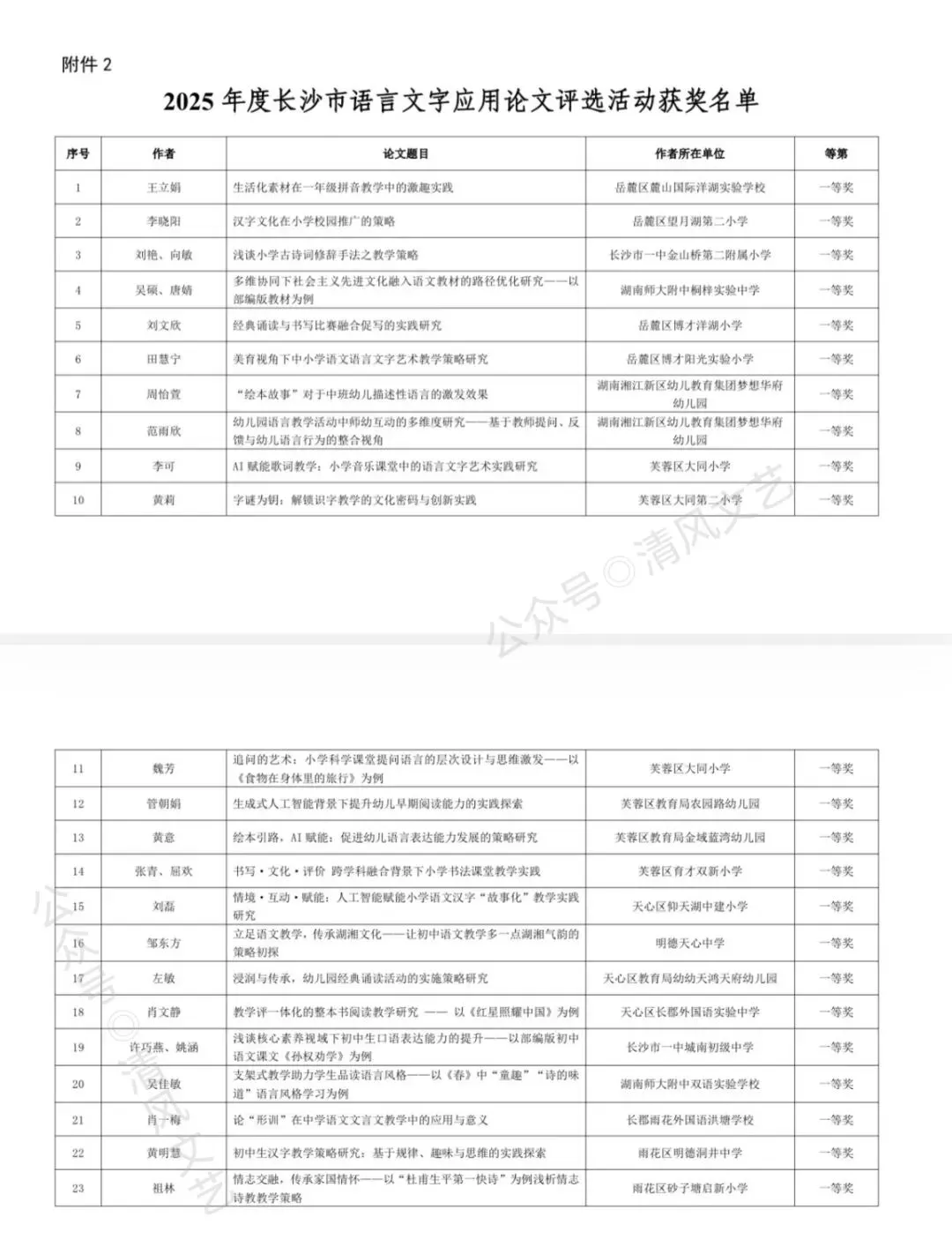 >长沙-2025年度语言文字应用论文评选结果的公示