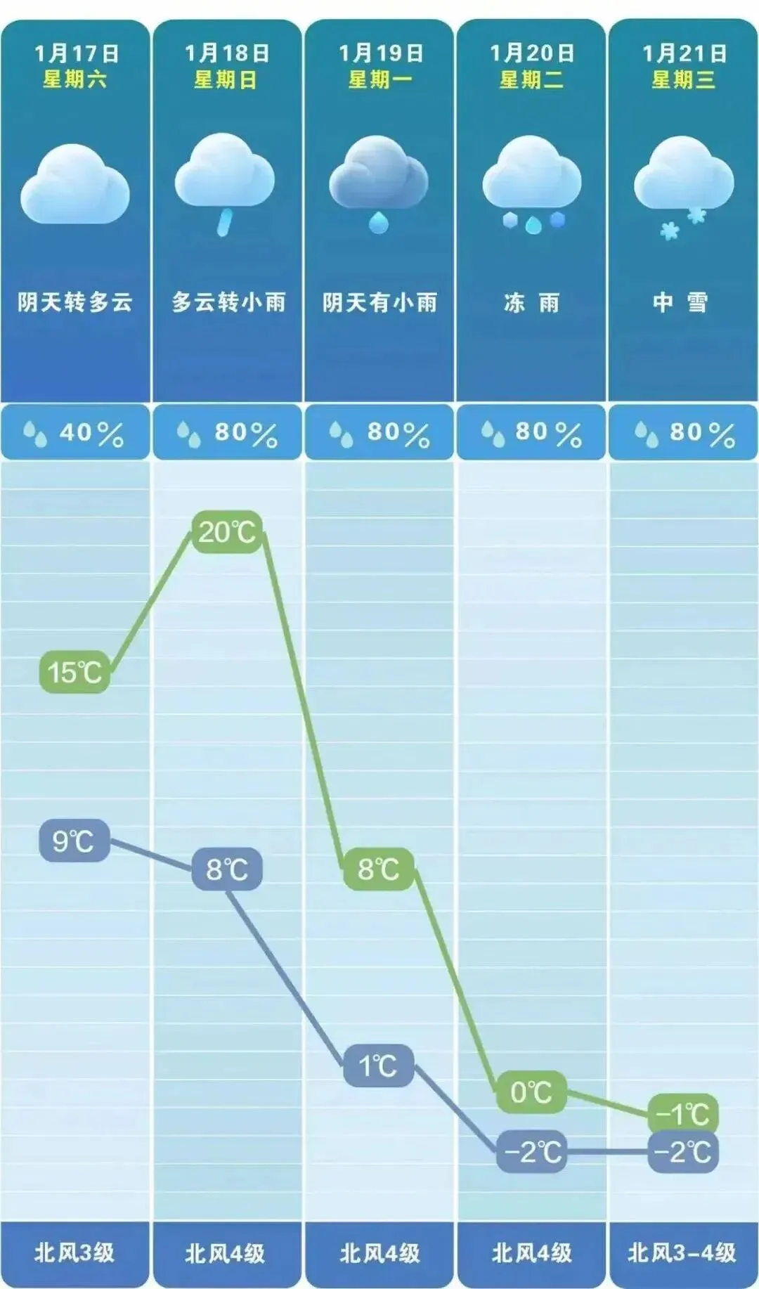 记者从长沙市气象台了解到,1月17日晚到18日白天长沙阴天为主,18日晚开始有一次寒潮天气过程,降温降雨(雪),22日白天将逐渐转为多云。