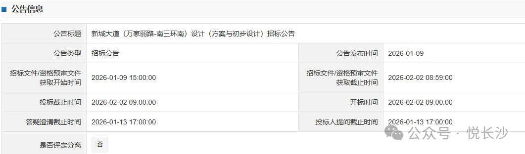 近日,长沙市公共资源交易中心发布新城大道(万家丽路-南三环南)设计(方案与初步设计)招标公告。