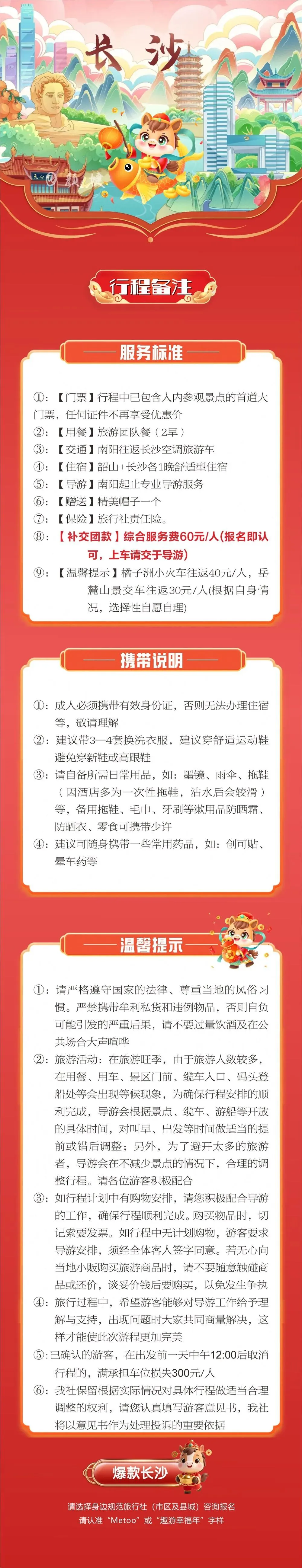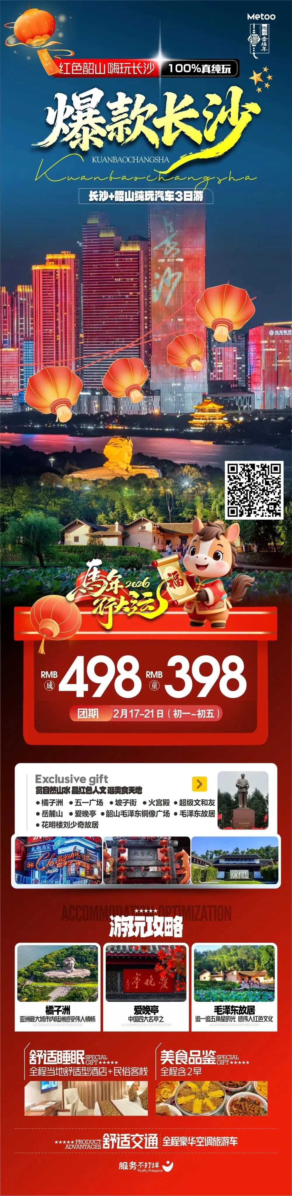 【春节 3日游I 爆款长沙】498元! 爆款产品!长沙+韶山纯玩汽车大巴3日游: 橘子洲 五一广场.岳麓山爱晚亭.韶山 初一-初五,天天发团