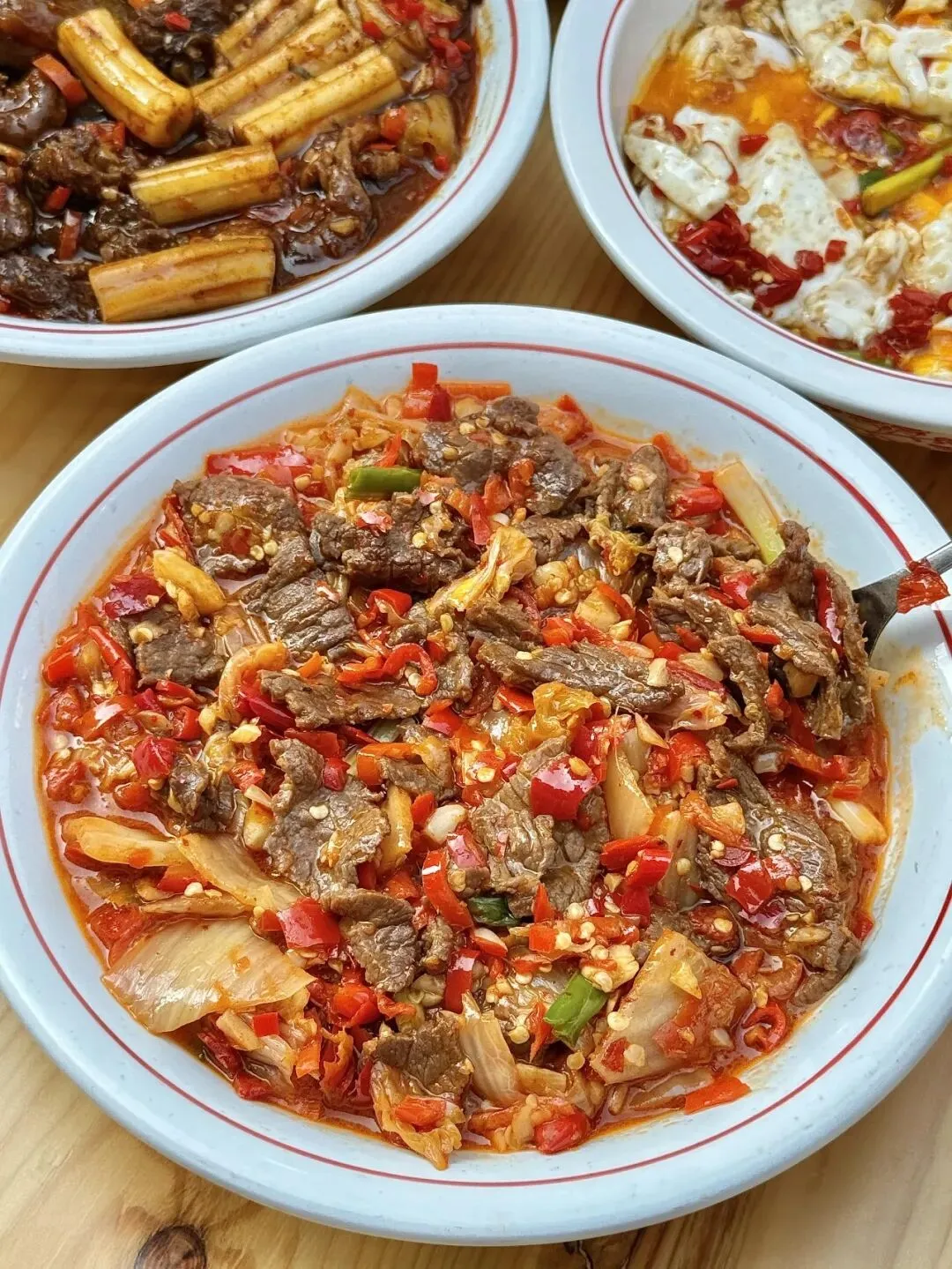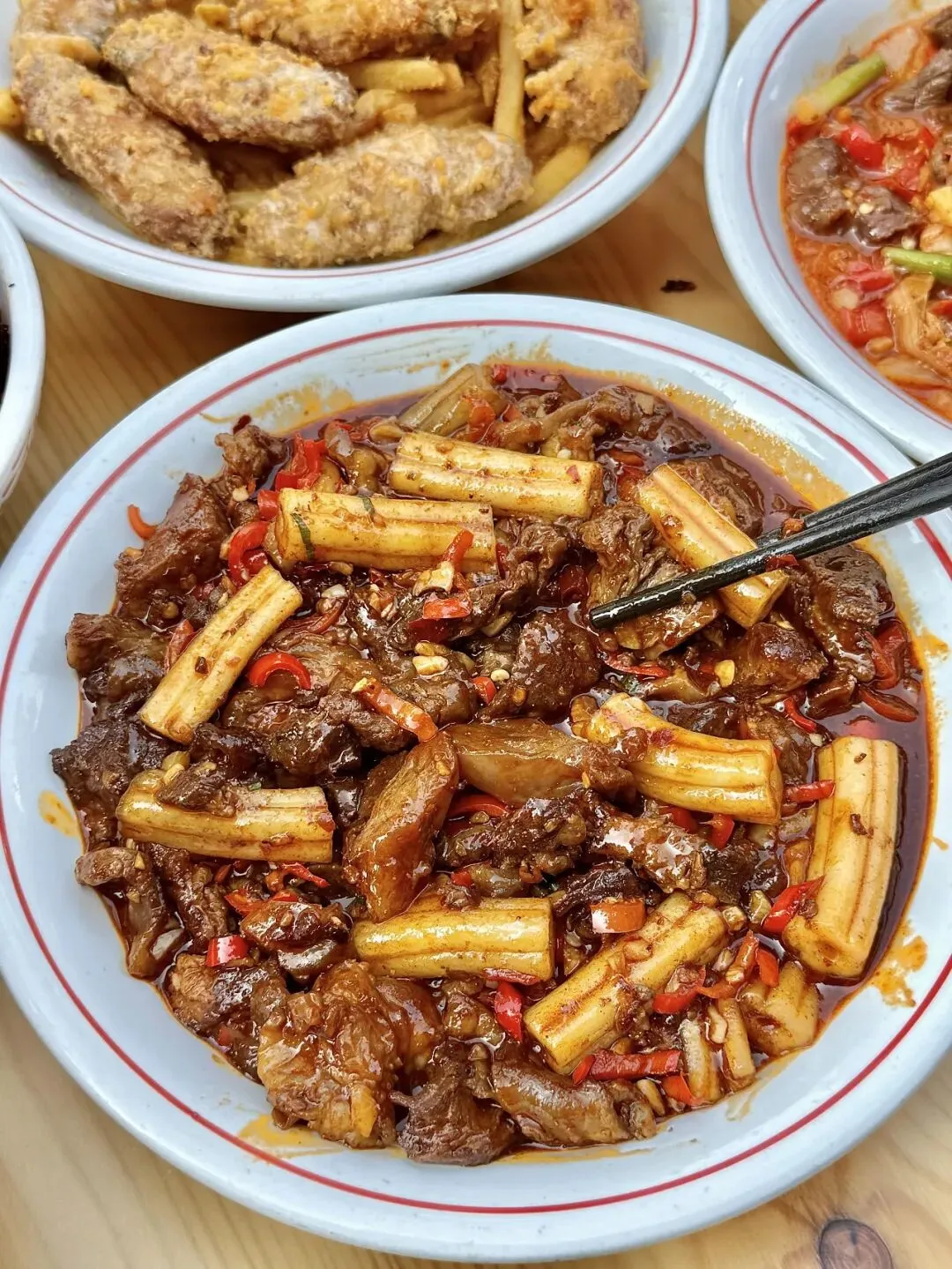 菜品都是现点现炒的!端上来满满的锅气,招牌的辣椒炒肉拌饭、粉耗儿烧牛腩、辣白菜炒牛肉…都好好吃啊!份量扎实…嘎嘎下饭!