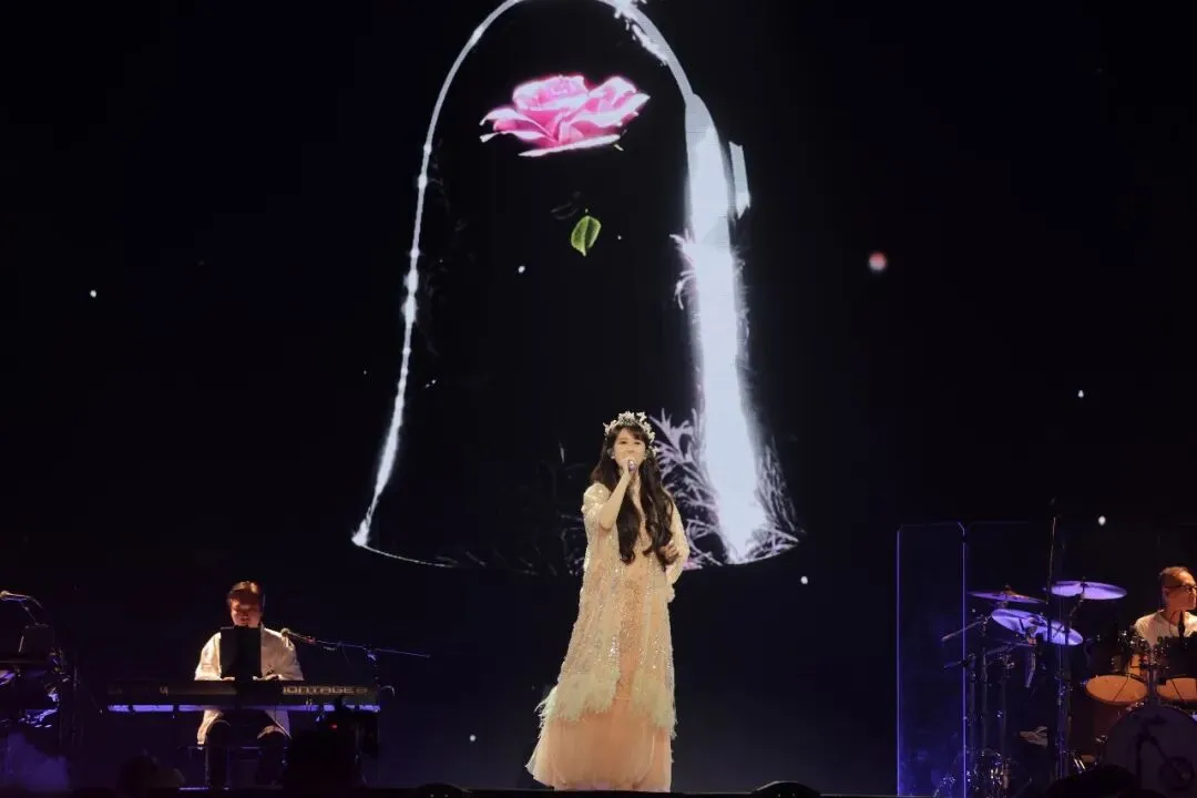 长达十多首的“专辑组曲”无疑也是当晚的高潮之一。从《校园里的消息传得特别快》到《太阳出来了》,这些跨越数十年的作品串联起的不仅是孟庭苇的音乐旅程,更是一代人的青春记忆。每一段旋律都对应着一段时光,每一个音符都承载着一份情感。