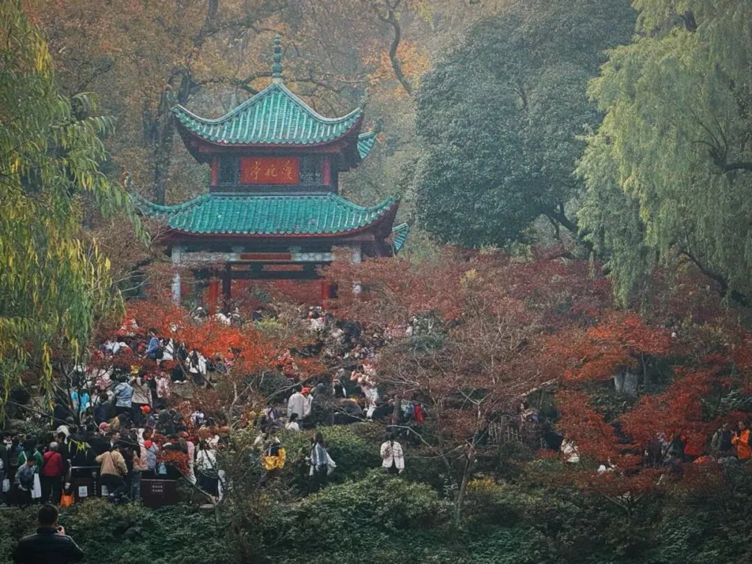 岳麓山和湖南大学基本放在一起玩。湖南大学后门是岳麓书院,岳麓书院后门是爱晚亭,爱晚亭再往上爬一些是岳麓山寺。