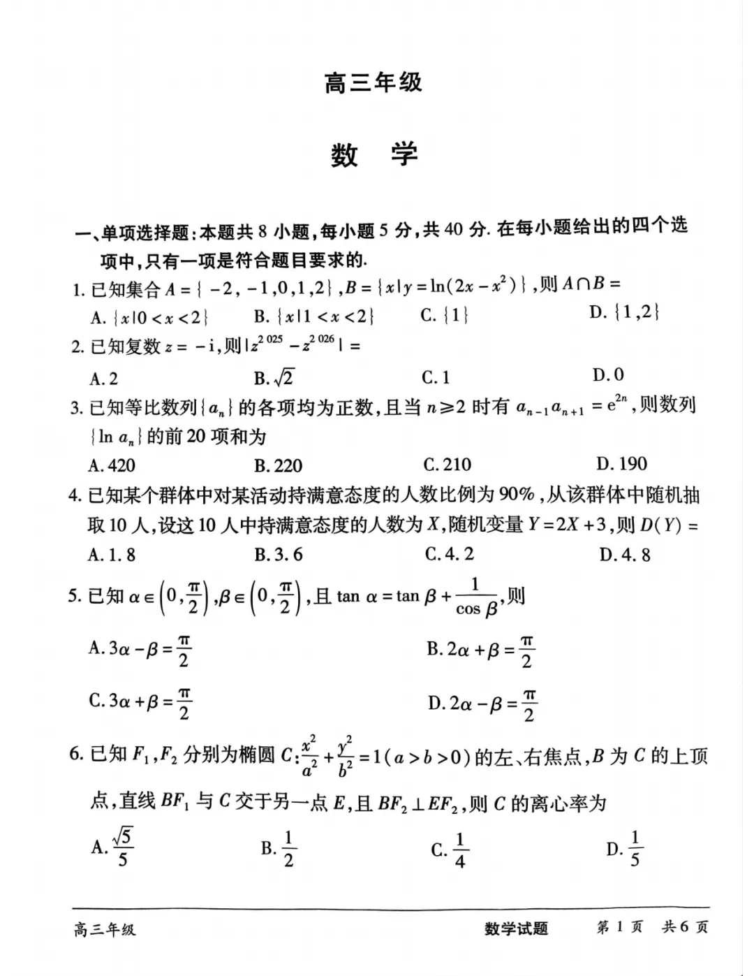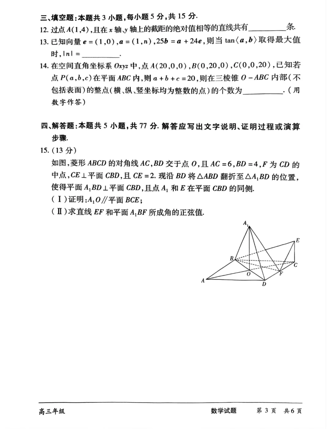 湖南省长沙市2025届高三下学期三模联考数学试卷