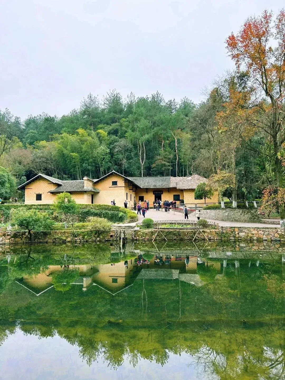 红墙绿瓦的古建筑