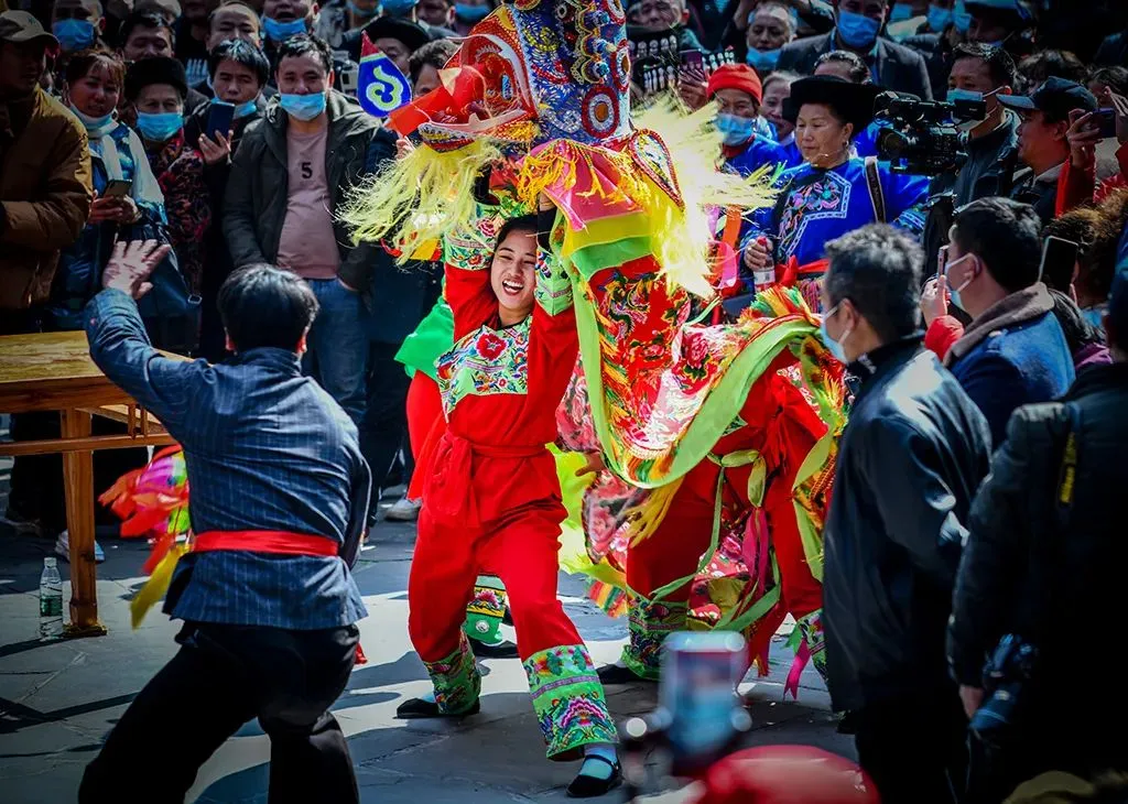 庆祝新春的新年主题表演,热闹非凡