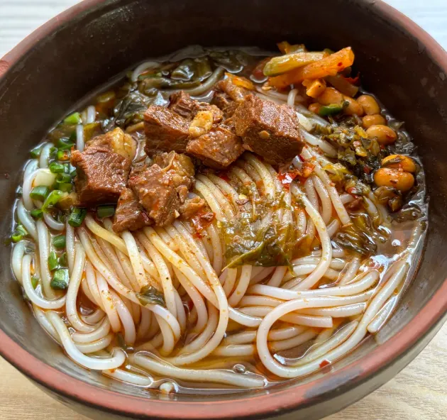 在常德,早起不是为了赶景点,而是为了嗦粉。这里的米粉,不是配角,是生活的主角。圆粉滑,扁粉入味,码子要选红烧牛肉或者牛杂。中午可以去喝桃花源的擂茶,生津止渴;晚上整只酱板鸭,撕着吃,肉干香,越嚼越有味。