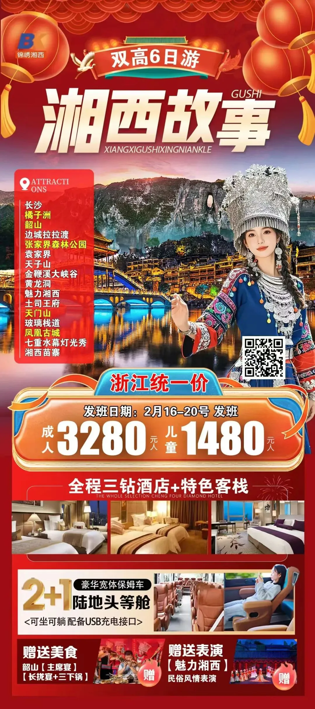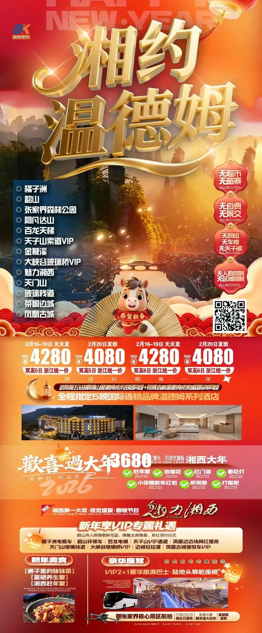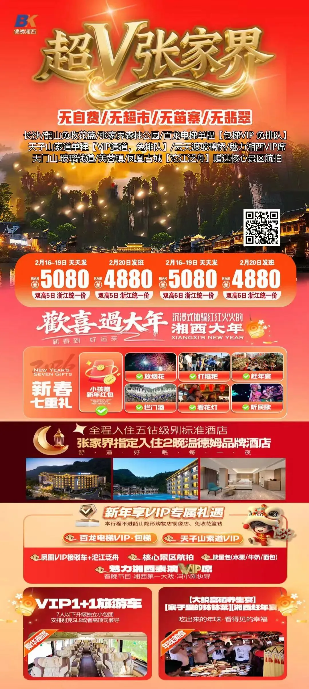 长沙张家界,湘西过大年!2月17日年初一!全包纯玩!天门时光冰雪奇缘!七十二层奇楼!2晚超豪+夜宿凤凰,环保车缆车送奶茶!千古情表演