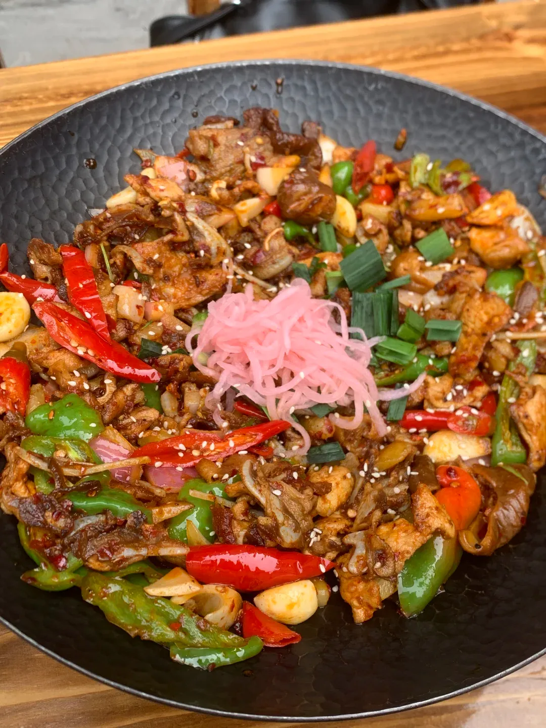 早餐得早一点。张家界人习惯在巷口吃碗米粉,汤底微辣,带股香叶味,粉细滑,一碗下肚,人就醒了。中午若在慈利,一定要试那里的合渣——豆腐渣、蔬菜、腊肉同炖,色不艳却鲜;饭后上山,口里还留着豆香。晚上回到城里,烟火气最重的,是小河边的三下锅。菜、肉、菌三样下锅,一股咕嘟的声响,比广告更诱人。