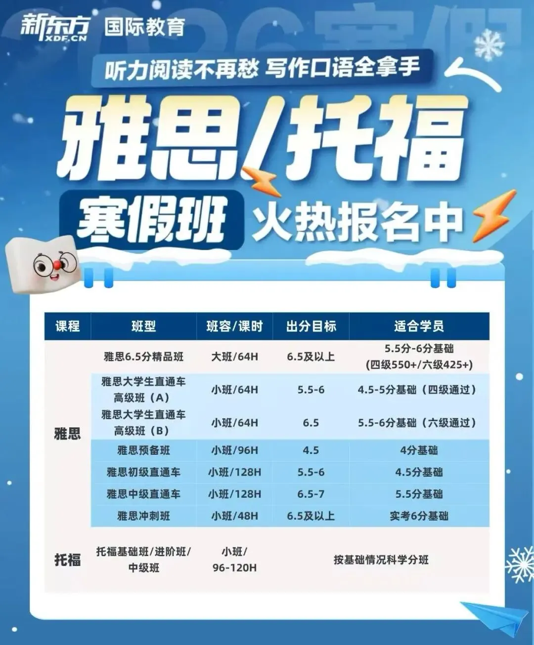 希望趁寒假集训雅思·托福