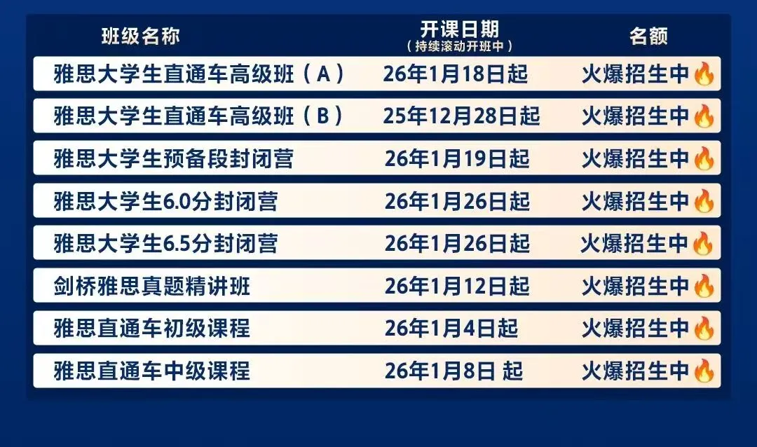 这个假期,我们为不同基础和目标的学生设计了多种班型,你可以根据自身情况灵活选择:专业师资、科学课程、搭配实用备考资料,助你通过一个寒假的集中训练,实现分数的显著提升!