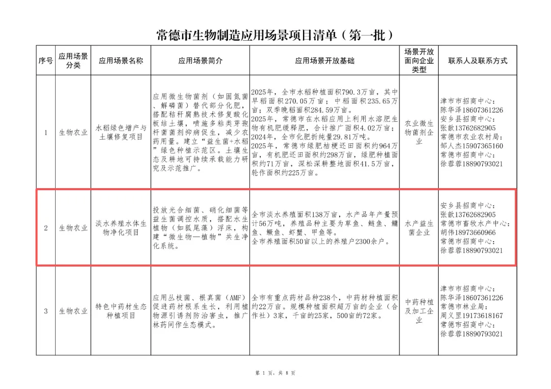 常德市生物制造应用场景开发报告及首批23个项目清单重磅发布,安乡6个项目入列~