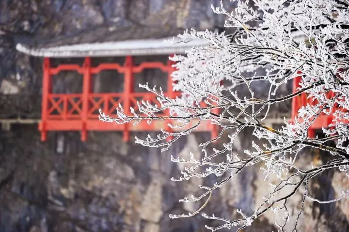 冬天的天门山,披上白雪后