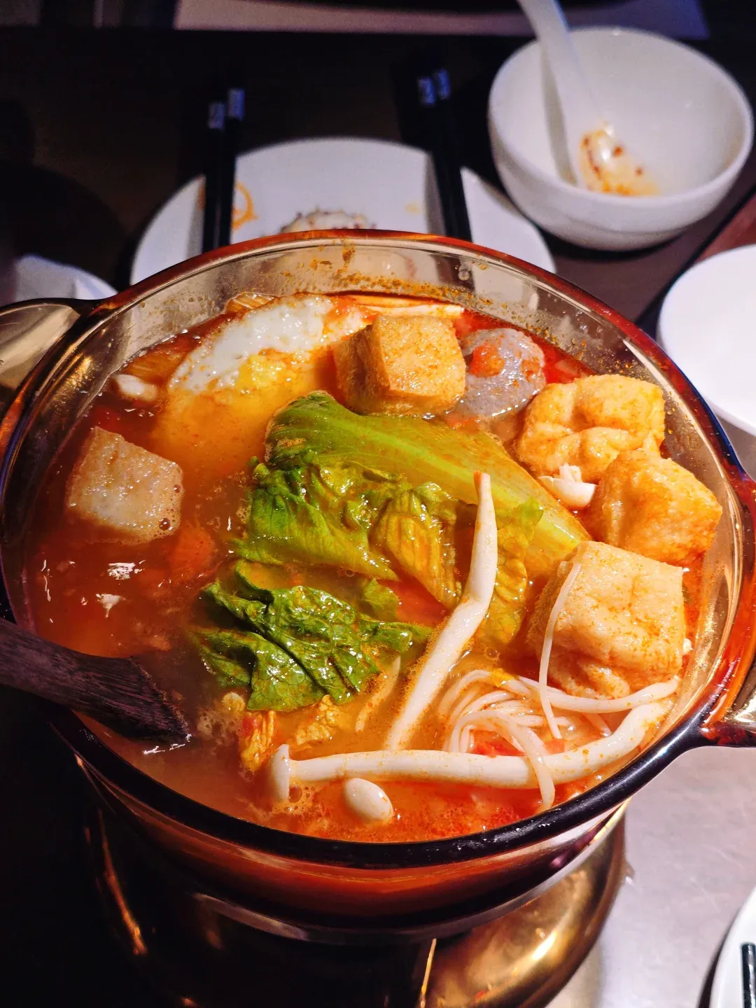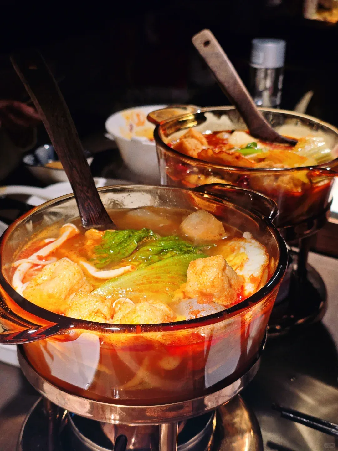 每份里面会配牛肉、牛肉丸、粉丝、蔬菜、油豆腐,可以去自助区拿煎蛋放火锅里煮。