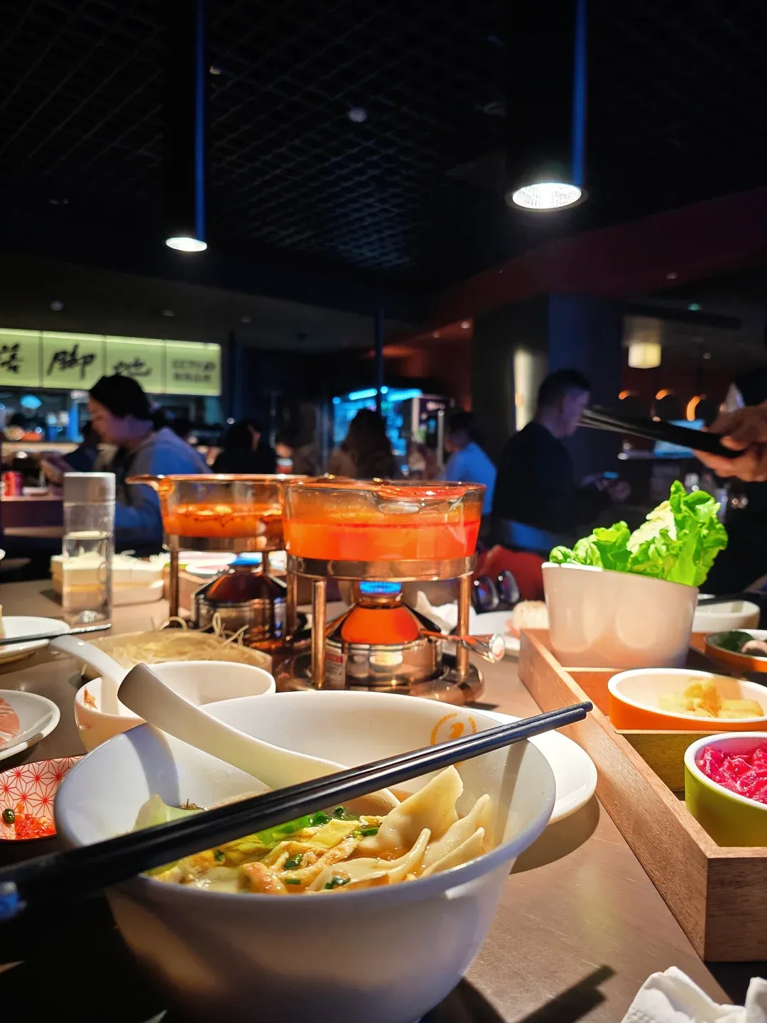 多人同行的话其实可以只点一个锅,然后用额度吃点别的,鲍汁捞饭和水饺我都挺喜欢的,炒菜每天会换品种,比如这次来是酸菜鱼。