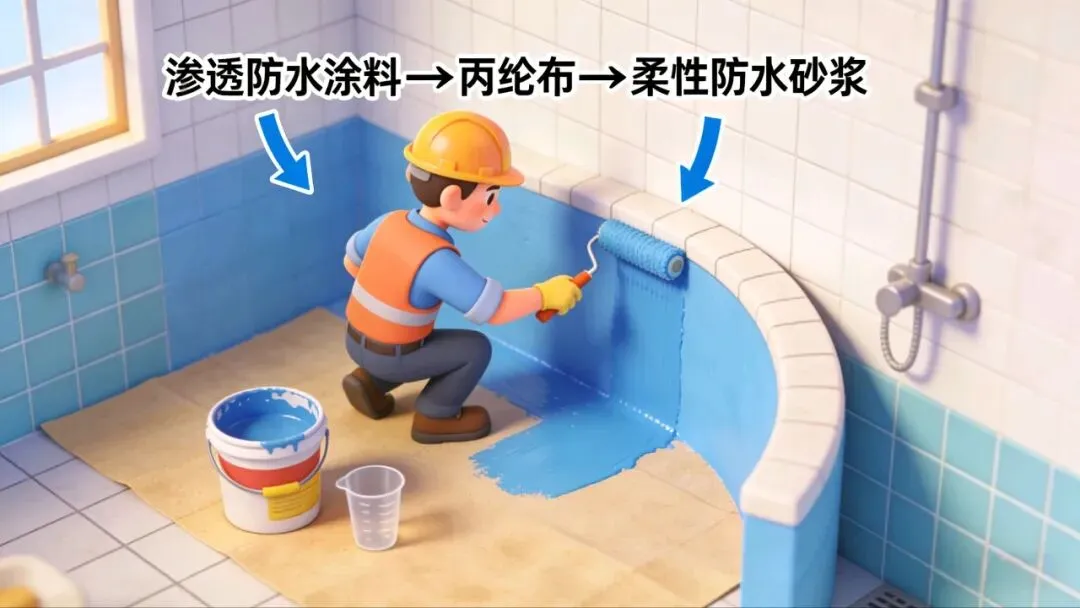 1. 三步防水法,潮气进不来:先刷渗透防水涂料堵墙缝→再铺丙纶布防开裂→最后抹柔性防水砂浆,厚度远超国标;墙角、卫生间门口做圆弧处理,多刷1-2遍涂料,直接把潮气锁墙外。