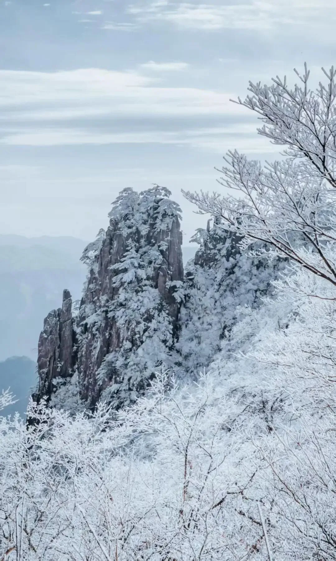 将三千奇峰镌成银装素裹的仙境画廊