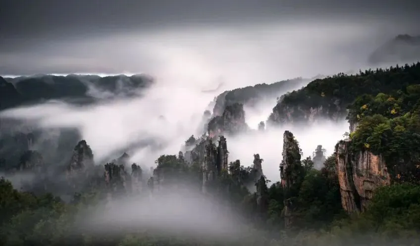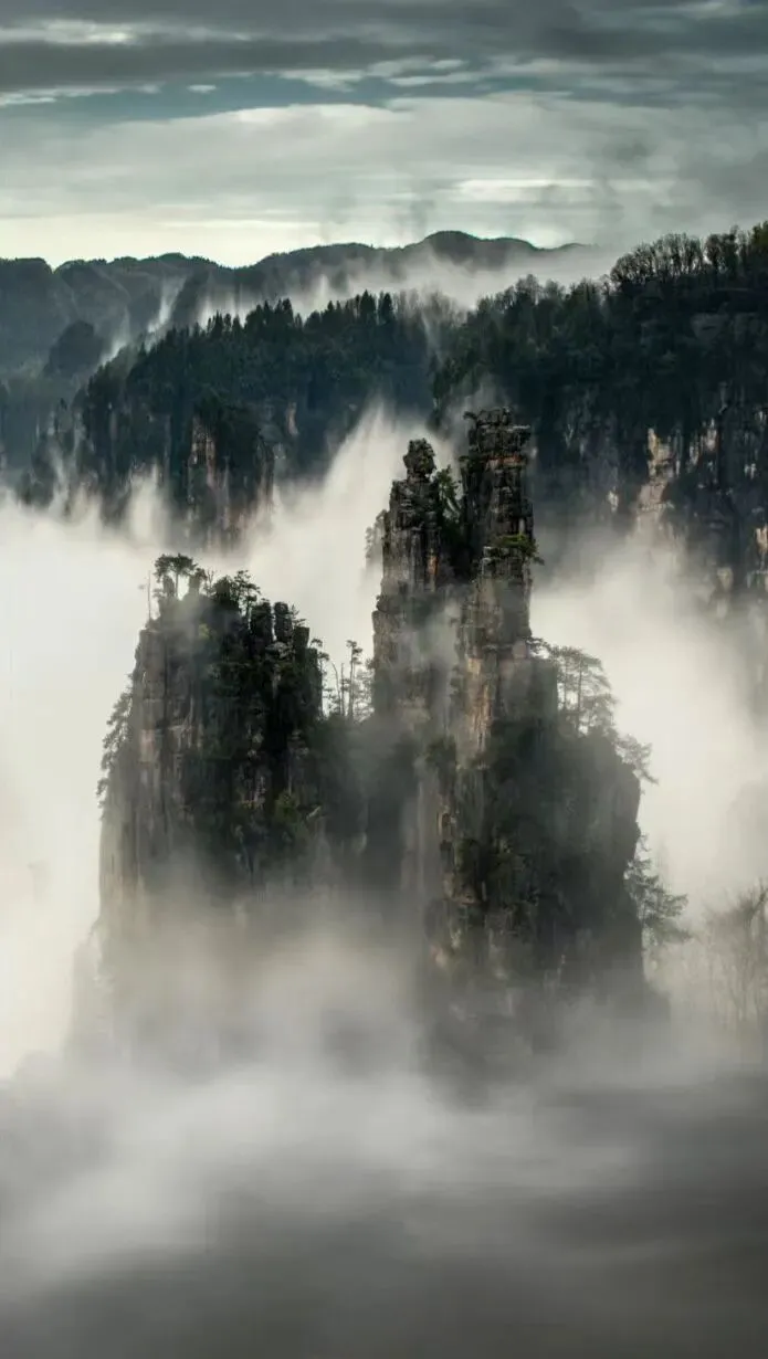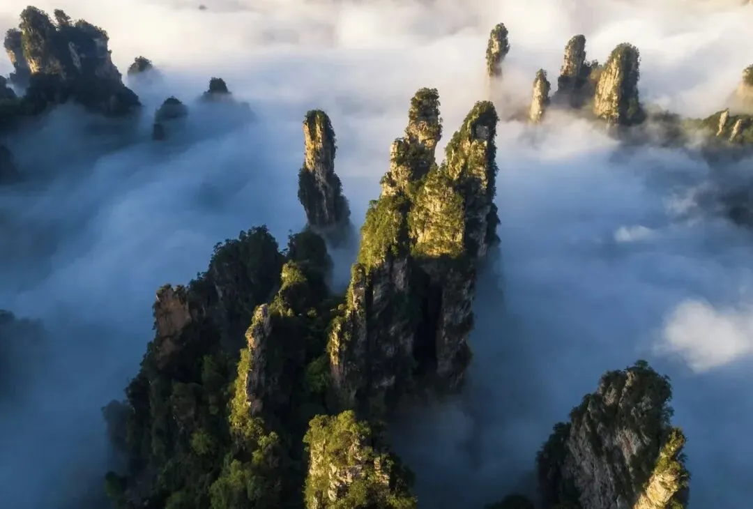 仙女散花——张家界必拍十大绝景!驻足观景台,石峰宛若簪花仙女俏立峰巅,怀抱花篮欲撒芳菲,灵动造型栩栩如生,是镜头下极具仙气的出圈画面。