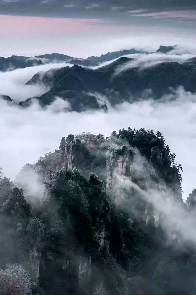 当雪雾漫过张家界山巅