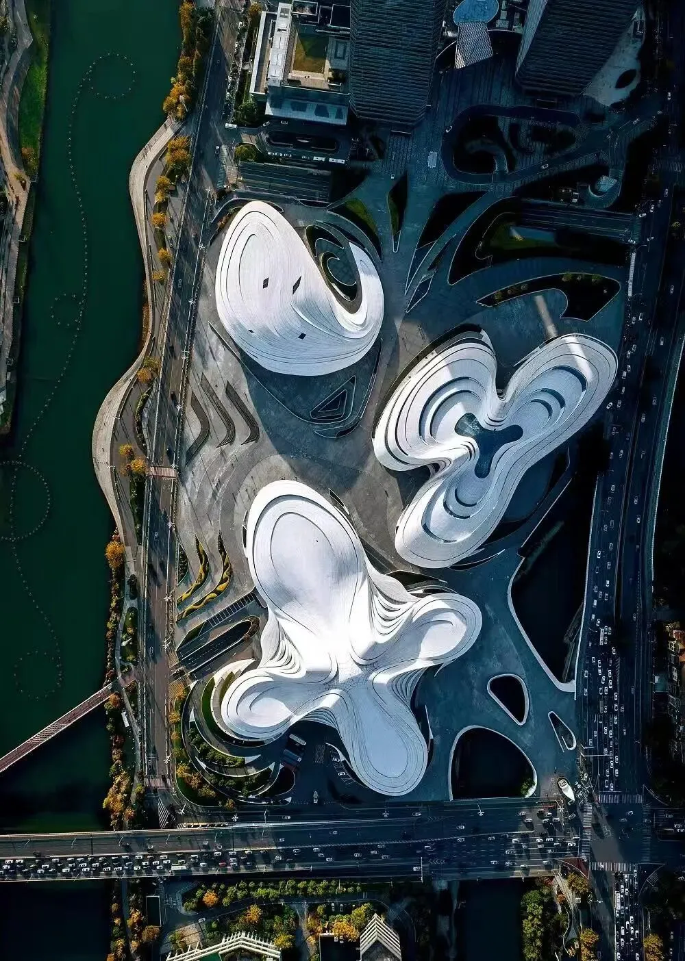 长沙梅溪湖国际文化艺术中心,扎哈·哈迪德设计,湖畔纯白流线建筑,高空俯瞰如芙蓉绽放,近拍曲线光影流动,出片率拉满。33米挑高穹顶中庭+环形楼梯,自然光勾勒几何美感,室内随手定格高级感;航拍视角更是绝配,轻松刷爆朋友圈。