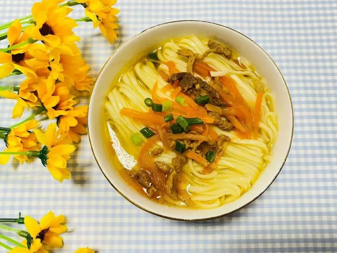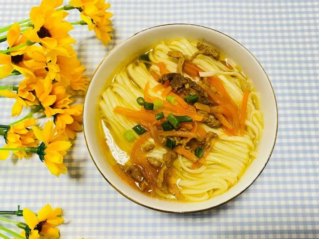 肉末胡萝卜手工面、鹌鹑蛋、砂糖橘