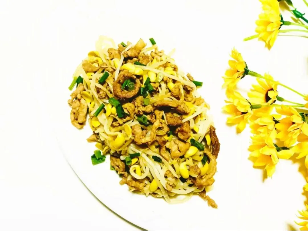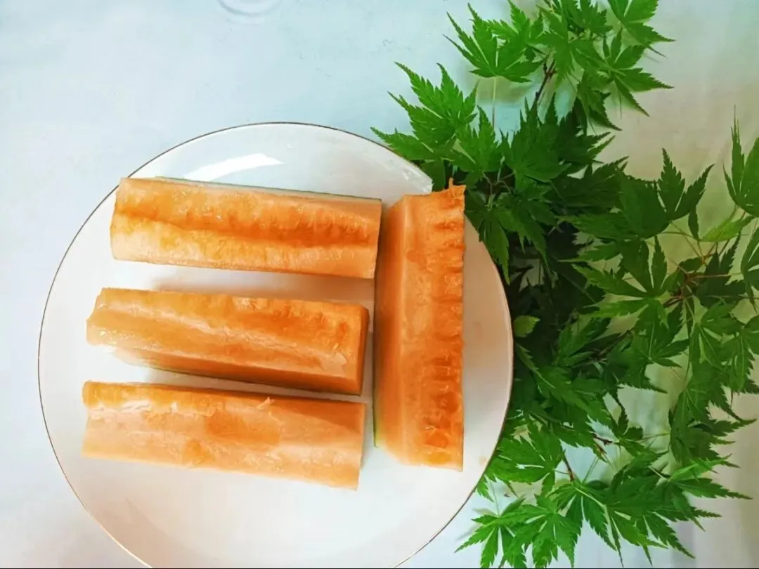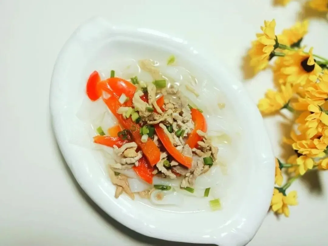 肉丝甜椒米面、鹌鹑蛋、哈密瓜