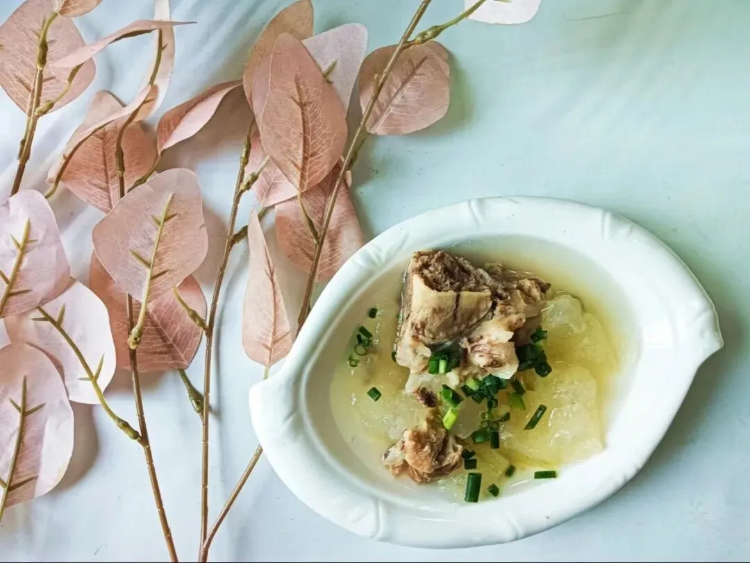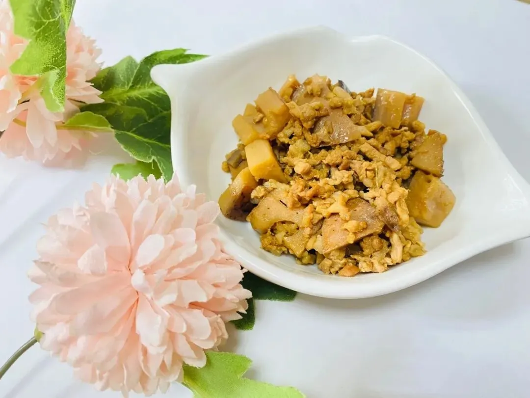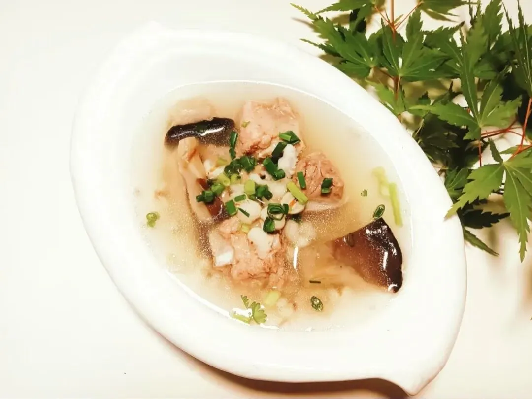 家常排骨、肉末炒藕丁、小炒五号白、乌鸡莲米汤、玉米桃花香米饭