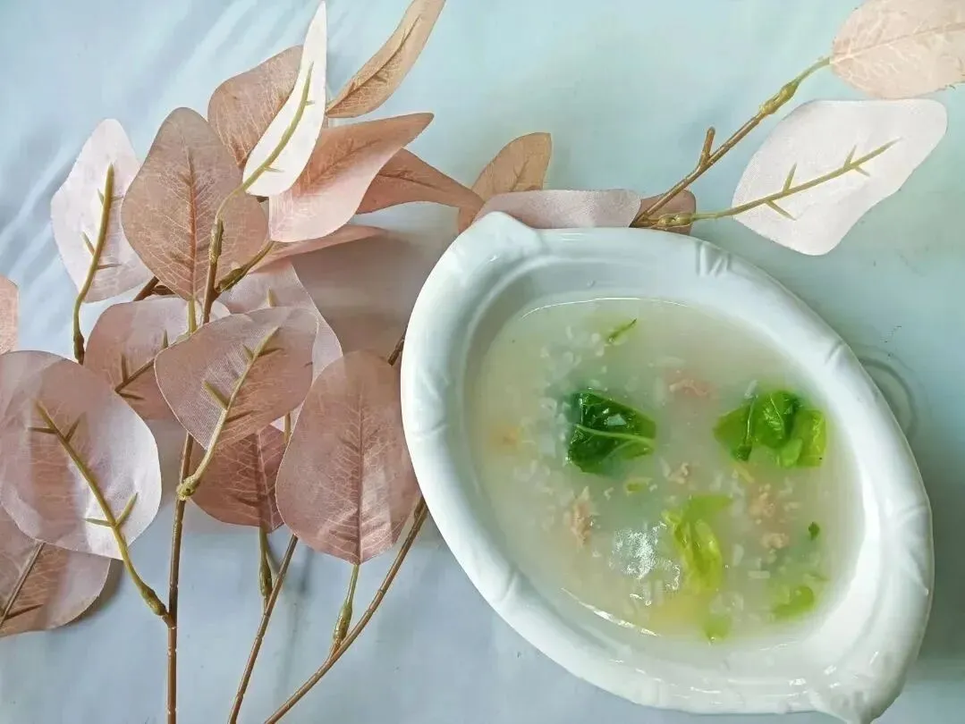 豆沙卷、青菜瘦肉粥、鸡蛋、粑粑柑