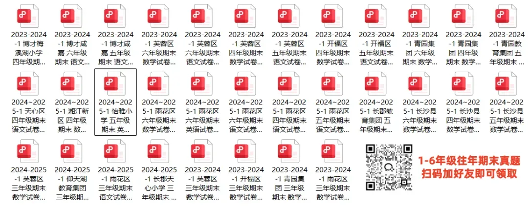 【期末试卷领取】长沙1-6年级上册往年期末真题,扫码加好友领取(已入群家长直接在群内下载)。